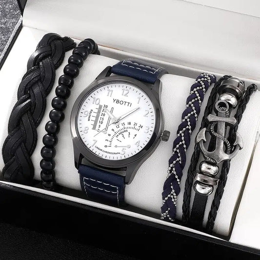 4Pcs Set Fashion Mens Sports Watches Man Business Quartz Wristwatch Luxury Blue Leather Bracelet Men Casual Clock Watch