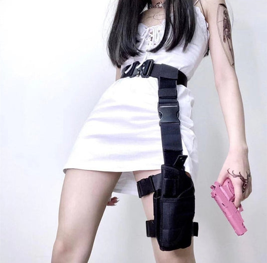 Harajuku Cool Women Leg Bag and Belt Adjustable Waist Bag Accessory Womens Black Fanny Packs Fashion Motorcycle Leg Bags