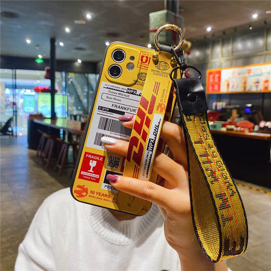 ins DHL 50th Anniversary Case For iPhone 13 12 11 14 15 Pro XR X Xs Max Mini Wrist Strap Cases For iPhone 7 8 Plus Phone Cover