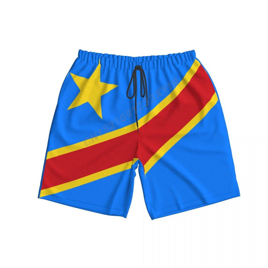 Summer Men's Democratic Republic Of Congo Flag Beach Pants Shorts Surfing M-2XL Polyester Swimwear Running