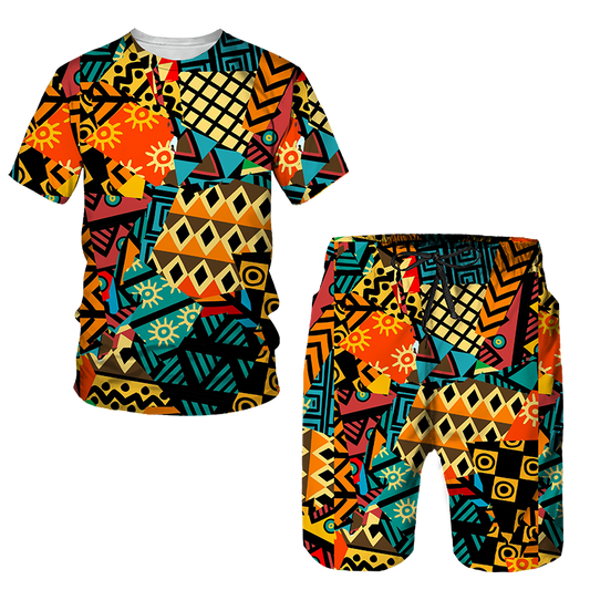 Men's African Style Summer Tracksuit Ethnic Totem Print T-Shirt Shorts Set Casual Clothing Vintage Oversized Fashion Outfits