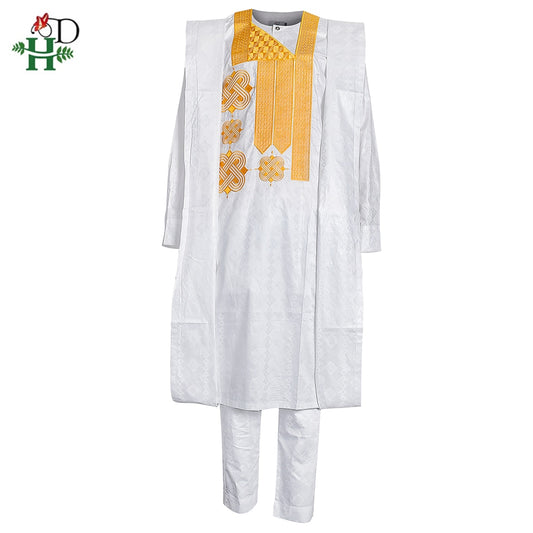 African Clothes for Men Traditional Bazin Riche Embroidery White Clothing Men 3 PCS Set Wedding Party Occasion Dress Dashiki