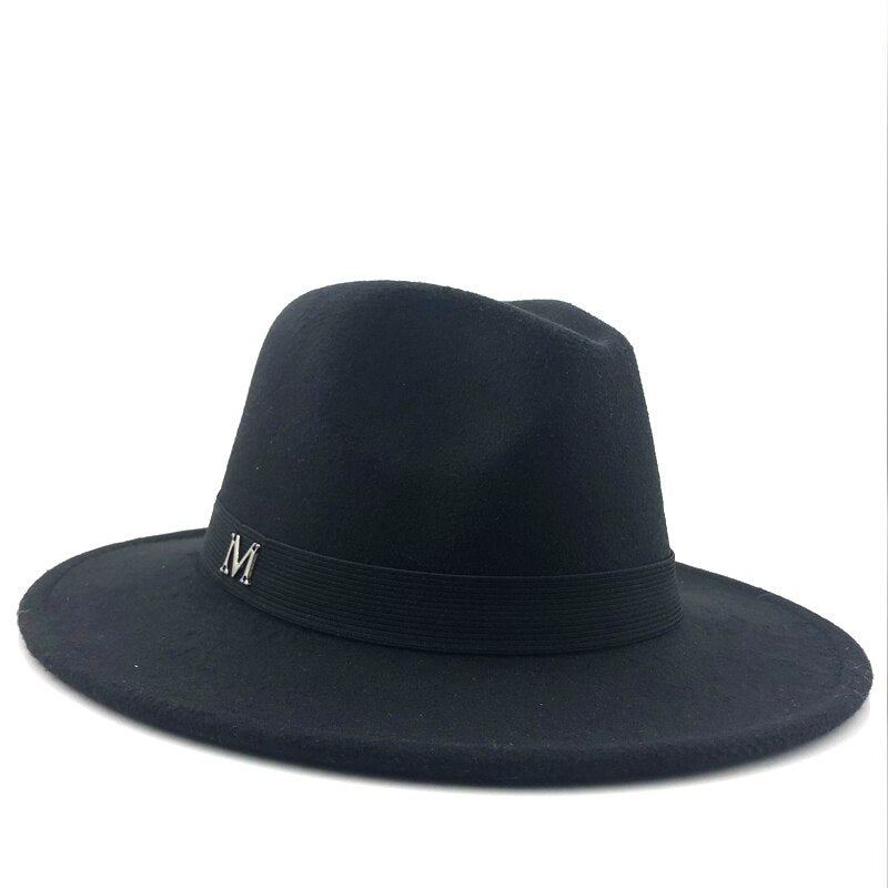 simple Wide Brim Autumn Female Fashion Top Jazz Cap Winter Fashion Wool Fedora Hat For Women Chapeau Femme Black Hats For Men