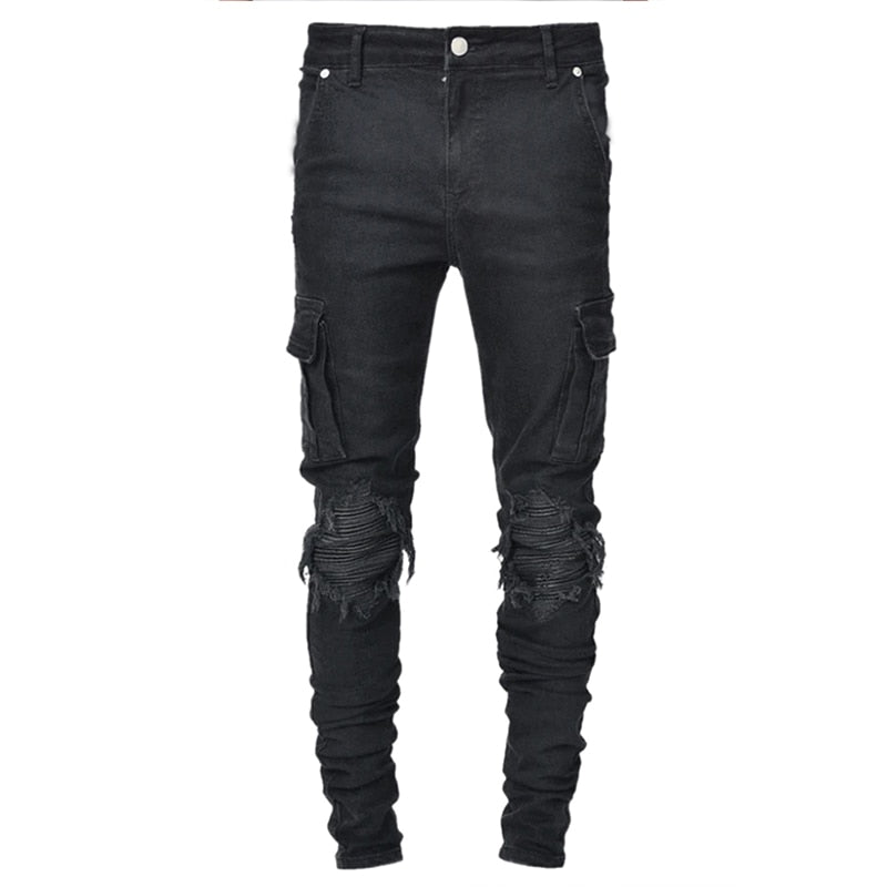 Jeans Men Pants Wash Solid Color Multi Pockets Denim Mid Waist Cargo Jeans Plus Size Fahsion Casual Trousers Male Daily Wear