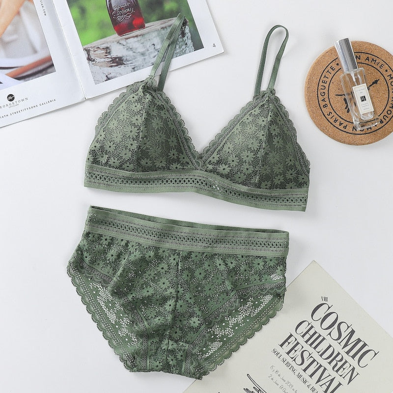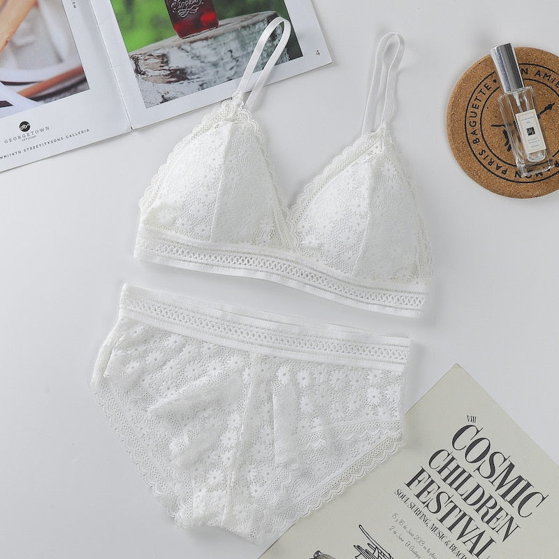 Women's Lace Bra Sets Seamless Underwear Backless Vest Sexy Padded Bralette Lingerie Ultrathin Bra & Brief Sets Female Intimates