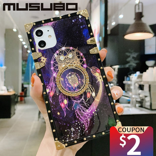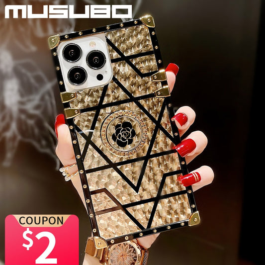 Musubo Luxury Gold Case For iPhone 14 13 Pro 12 Pro Max 11 XR Cover Stand Ring Fundas iPhon XR Xs Max 8 Plus SE Coque Capa Brand