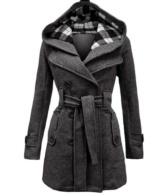 Autumn Elegant Vintage Office Lady Women Overcoats Slim Plain Belt Girls Winter Gray Female Coats hooded double-breasted 2XL 3XL