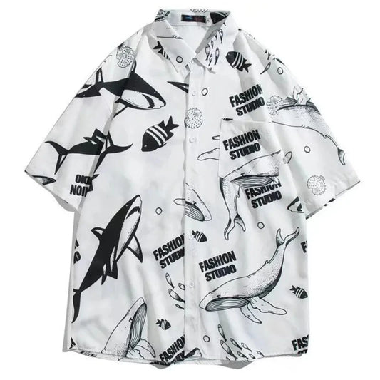 Men's Fashion Retro Printed Short sleeved Shirt Men's Hawaiian Printed Shirt