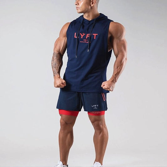 Summer Sleeveless Hoodie Gym Men's Vest Sports Bodybuilding Fitness Navy Blue Sports Vest Basketball Fashion Slim Casual Tops