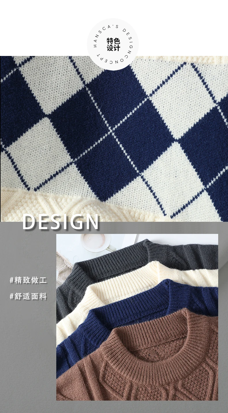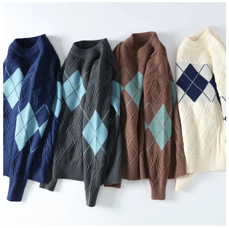 Autumn Winter New Men's Fashion Casual Slim Fit Plaid Sweater Men's Plus Velvet Thick Warm Large Size Sweater MY9662